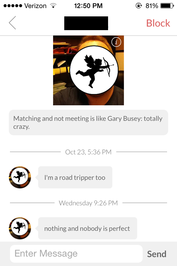 When I send someone a message, I try to zero in on one or two profile details that can be potential conversation starters. This guy’s favorite movies were almost identical to mine, and he had the following little caveat at the end: