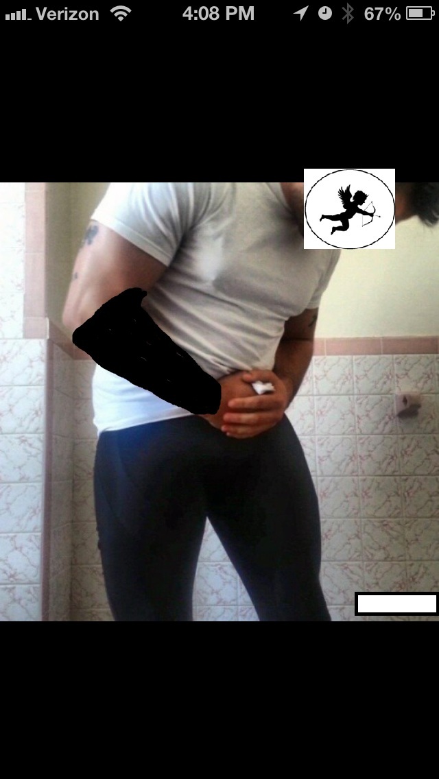 1. The guy is flexing. It’s a strange pose, but he’s actually flexing his arms (which leads to the weird, almost-grabbing of his stomach), his pecs and abs (which accounts for the leaning forward posture), and his legs (which leads to your scary quads comment). He’s wearing the tights because I bet those are his workout clothes; and I would think his workout partner is taking the picture.