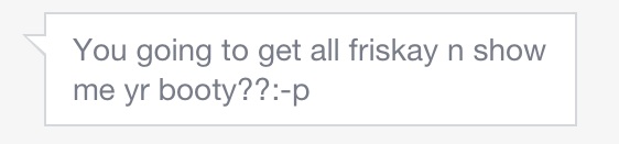 I … I don’t even know how to respond to that. First, what other kind of fun is there? Second, and maybe I’m wrong, but I feel like what he’s really asking is “are you open to casual sex?” Again, WTF with this line of questioning? Third, emoticons. Sigh. The only thing I’m open to is ignoring you.