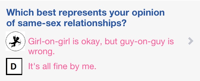 There’s no way I will date someone who thinks anything other than “it’s all fine by me” is an appropriate answer. There’s not really much else to say about this.
