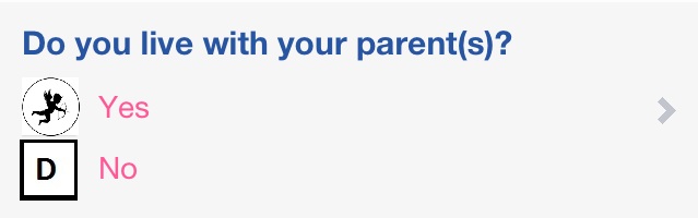 First – his answer of yes. Like I said, times are tough, so I can imagine scenarios where this wouldn’t necessarily scare me off, but as a general rule living with your parents sets off alarm bells for me. Are you unable to hold down a job, and thus unable to pay monthly bills? Do you have any life ambition? Does your mother still do your laundry? Is it your dream for them to build an apartment over the garage, so you never have to leave home? Etc. Second, my answer, the one that indicates that I’m a fully functioning, self-sufficient adult (haha, I can’t even type that without cracking up) with a job and an apartment, seems to be the opposite of what this guy wants. He wants me to still be living with my parents at the age of 28? I don’t understand. Aside from a whole host of more serious questions about this answer, if you live with your parents, and I live with my parents, where do we go to make out? The car in the driveway? Just – NO.
