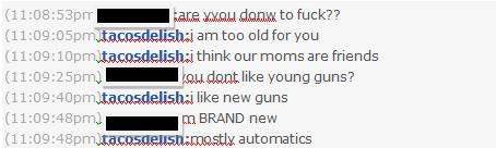 Usually, I immediately press ignore when I get chat requests on Tacos. But, thanks to the lack of new Sunday night programming on my favorite networks yesterday, (THANKS GRAMMYS! NO ONE WATCHES YOU, BTW!), I was performing a lackluster search on Tacos when a chat box from a fine young fella in the MD suburbs popped up, and I decided to engage with him a bit. And boy, am I glad I did: