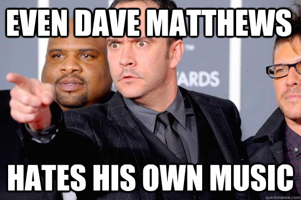 I hate Dave Matthews Band. So much. Sofa king much. As in, it’s semi a non-negotiable. If we’re dating, you’re allowed to have owned a Dave CD in high school and worn a puka shell necklace to see him in concert/take some bong hits when you were 17, but that interest better not have followed you into adulthood. His voice. Uggghhhh his voice. Those awful screeching rambling excuses for songs. Shudder. I mean: