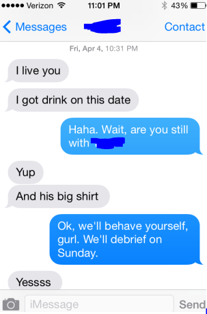 L: (mouth agape) “I don’t even remember sending those texts.”