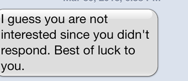 2. Because we want to show how cavalier and blasé we can be to the other person, little psychological games like ‘Intentionally Take Hours Or Days To Text Back’ will happen. They aren’t fun. Yeah no, I just don’t have time for this shit anymore. We live in a world where people are always in close proximity to their phone. There are lots of perfectly legitimate reasons why someone might not respond immediately. But if I notice that it’s starting to become a thing that it takes you eons to respond to my texts, then I’m done. Don’t get me wrong, I’m certainly not above raising the threat level to orange and scrambling some jets when he doesn’t respond within a few hours (see #10). But I’m also not above cutting him loose after he does it a few times and I get the impression it’s just to play the game. I am better than that.